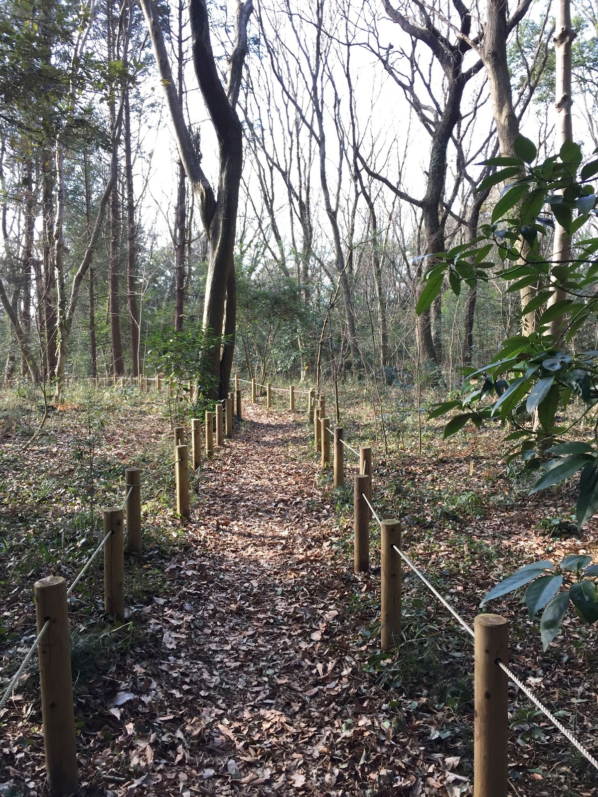 南口から散策路に入ってすぐに 上を見上げると、クヌギの黄葉が美しい